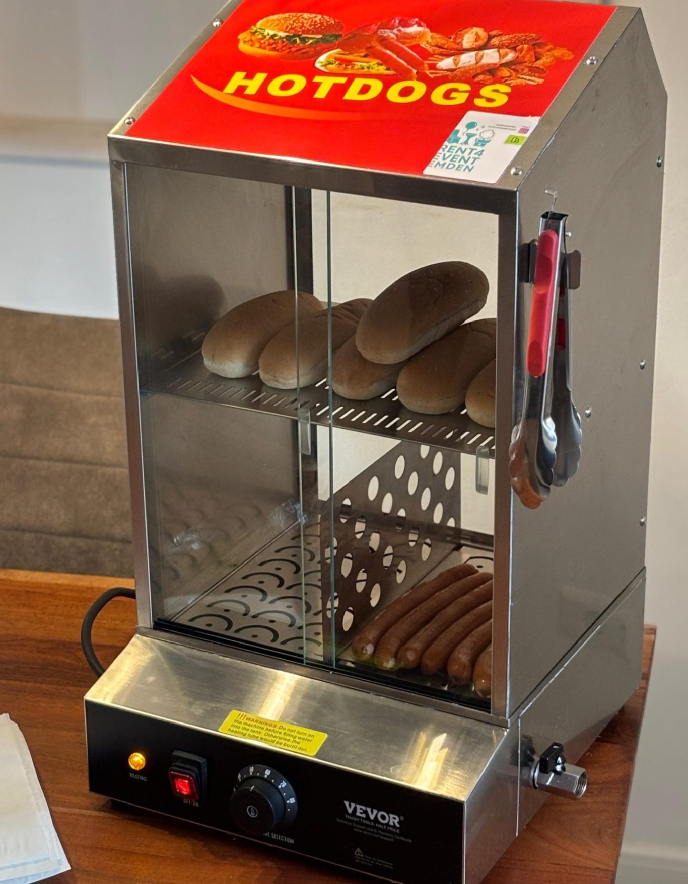 Miete unseren Hotdog-Erwärmer und serviere im Handumdrehen warme, leckere Hotdogs – perfekt für jede Feier oder Veranstaltung!